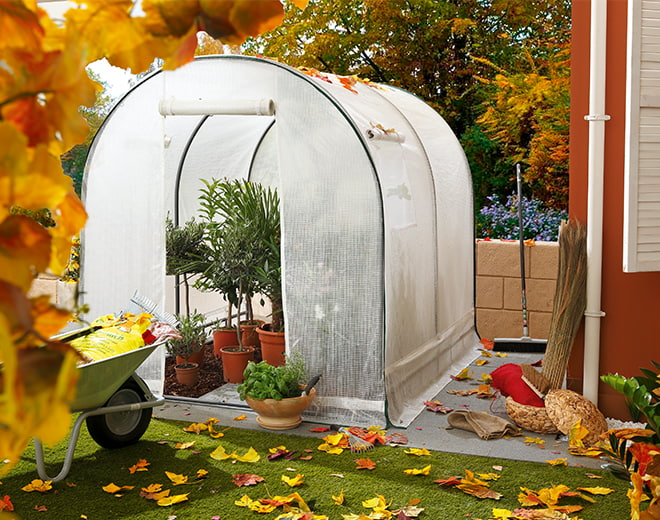 See, kui hästi kasvuhoone sügistormile vastu peab, sõltub täielikult sellest, kuidas see on ehitatud. Kui kahtled selle korrasolekus tormi korral, võid katuse alla asetada toed, mis katust koos hoiavad. Samuti veendu, et kasvuhoone seisaks kindlalt maapinnal. Kasvuhoonet saab kaitsta ka näiteks maa külge kinnitatava presendiga. See kaitseb suurema tuule ja vihma eest ning ei lase lumel katusele koguneda. Kui lund aga koguneb, tuleb see eemaldada, sest eriti just märg lumi on väga raske ja nii on oht, et katus kukub sisse.